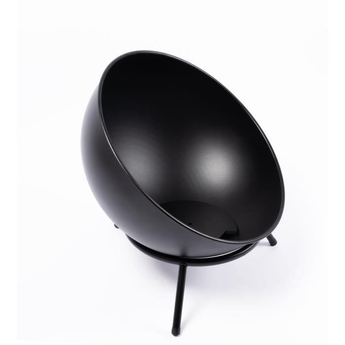 Brasero Garland de la marque FIREPIT en acier noir, 45,5 cm de diametre, 25 cm de hauteur. Braséro ouvert a placer sur le trépied. Grille et tisonnier inclus. Le bol du braséro est orientable pour protéger le feu du vent ou donner un style déco a votre extérieur.