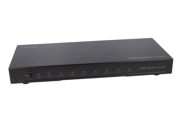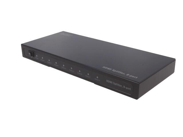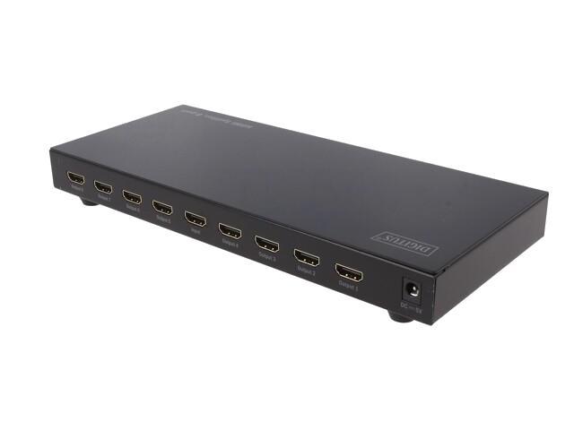 Répartiteur HDMI, 8 ports 1080p, 3D, HDMI haute vitesse, 2,25 Ghz/225 MHz, boîtier métallique, noir Le répartiteur HDMI 8 ports Digitus vous permet de distribuer des signaux vidéo jusqu'à huit appareils de lecture (téléviseurs, écrans, moniteurs, projecteurs, etc.).