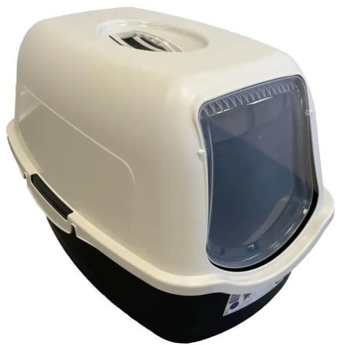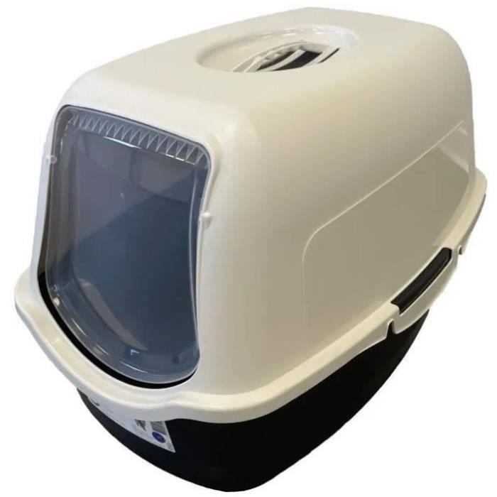 SACHA Maison de toilette pour chat - Bac a litiere - 56 x 40 x 39 cm - Noir et blanc - PET DESIGN