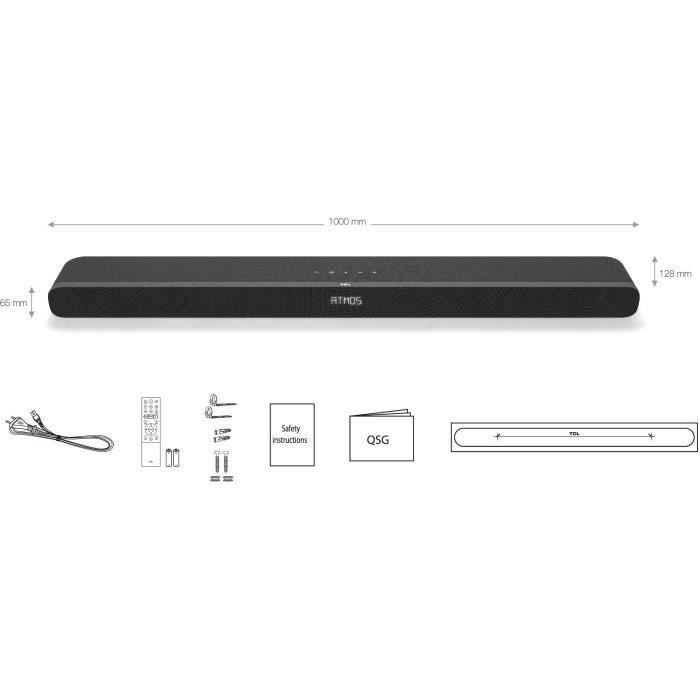 TCL TS8211 - Barre de son Dolby Atmos 2.1 avec caissons de basse intégrés - 260W - HDMI - Chromecast intéré - Compatible Alexa - 97dB - Mini jack 3,5mm - Keypad 5 boutons - Compatible Apple Airplay