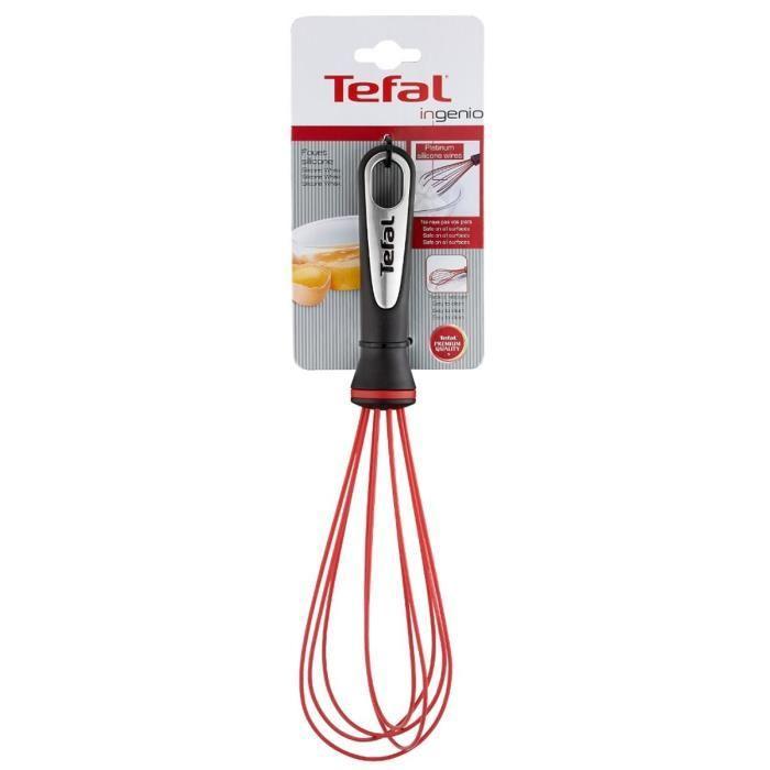 Fouet INGENIO de TEFAL en silicone manche plastique, coloris : rouge et noir - Ne raye pas vos plats - Facile a nettoyer - Résistant a la chaleur - Compatible lave-vaisselle.