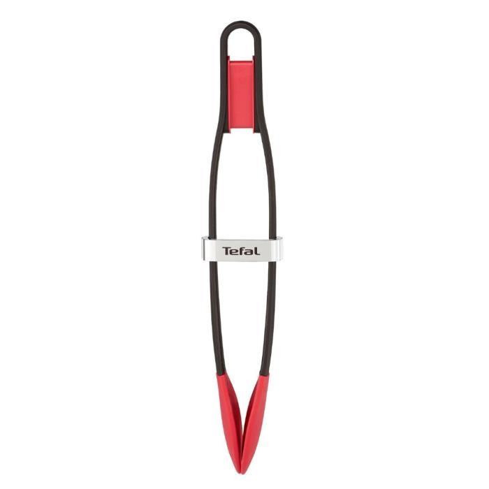 Pince a aliments INGENIO de TEFAL thermoplastique et bouts sillicone, coloris : noir et rouge - Pour saisir, remuer, retourner, servir, agiter, mélanger... - Sa tete en silicone préserve les revêtements anti-adhésifs - Résistant a 220-C - Manche antidérapant et ergonomique - Compatible lave-vaisselle.