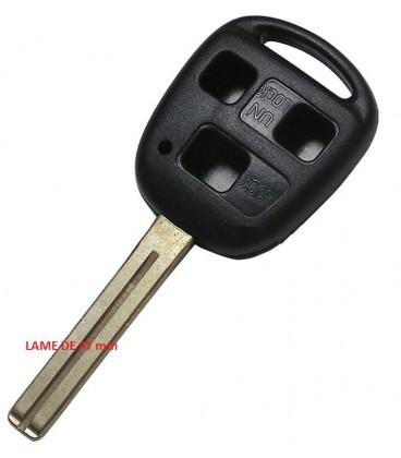 Coque + lame compatible Toyota 3 boutons Lexus, Auris, Land Cruiser, Rav4, Verso, Yaris 3 boutons Profil lame : 7 x 47 mm fraisée Tête fixe