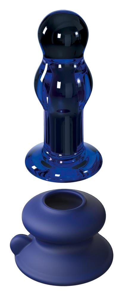 Longueur totale 10,6 cm, longueur d'insertion 9,1 cm, Ø max. 3,7 cm. Base d'aspiration de 4,6 cm de haut, Ø 7 cm. Verre, silicone, ABS.
