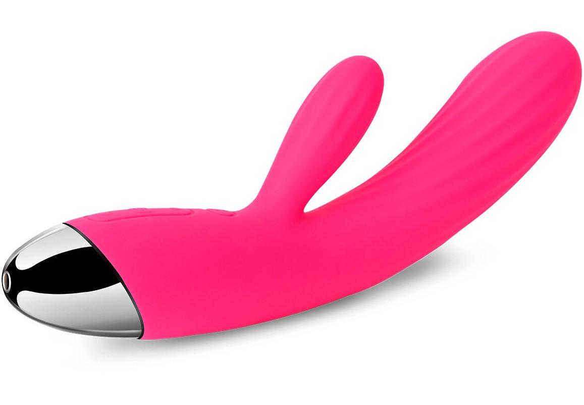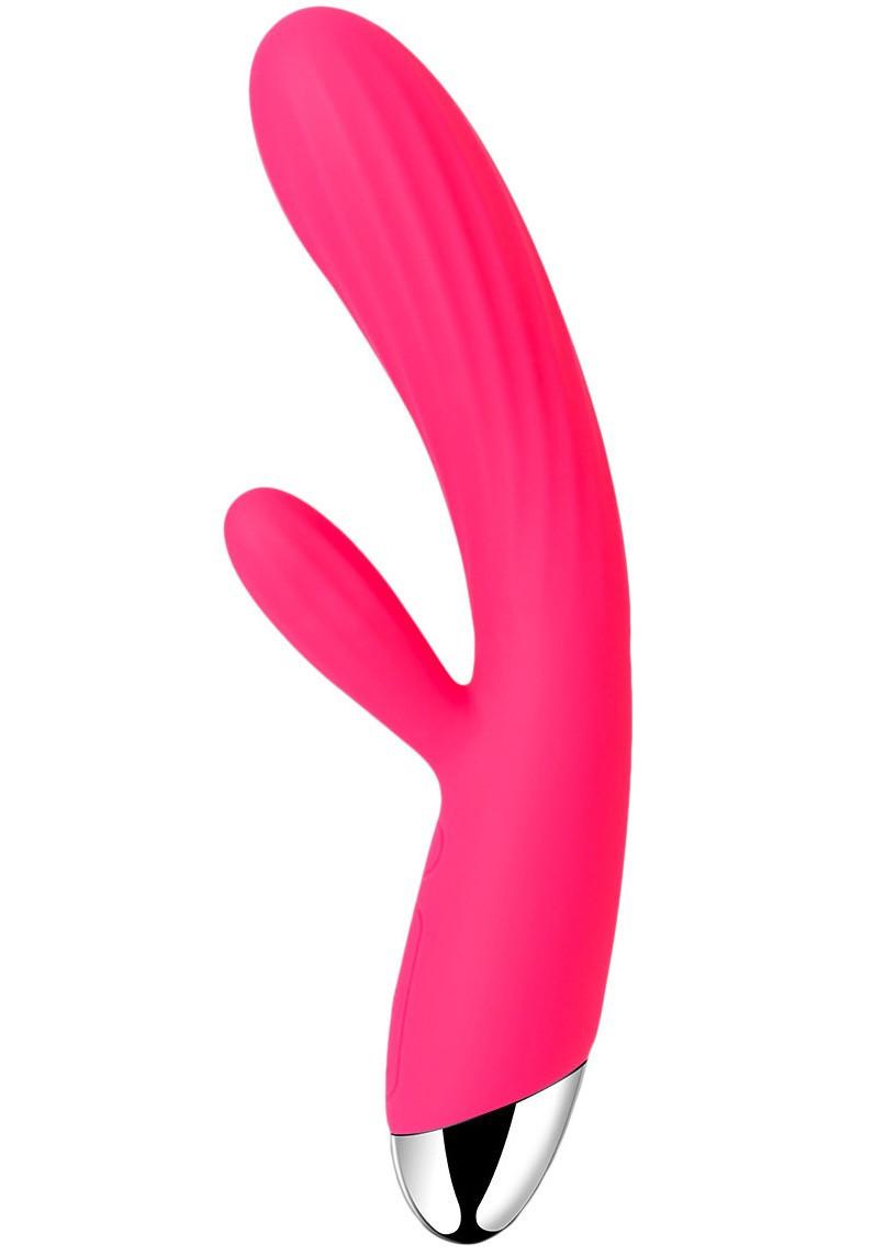 Vibromasseur rabbit de forme ergonomique avec rainures de stimulation proéminentes.