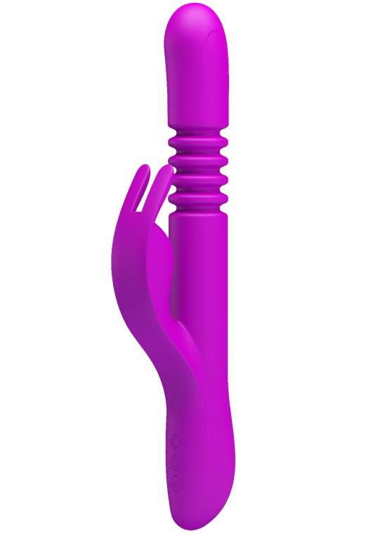 Ce vibromasseur dispose de plusieurs moteurs. Un moteur rotatif à 4 fonctions stimule les parois du vagin pendant que le va et vient simule la pénétration. Son stimulateur de clitoris en forme de tête de lapin vient vous titiller la ou ça fait bu bien.
