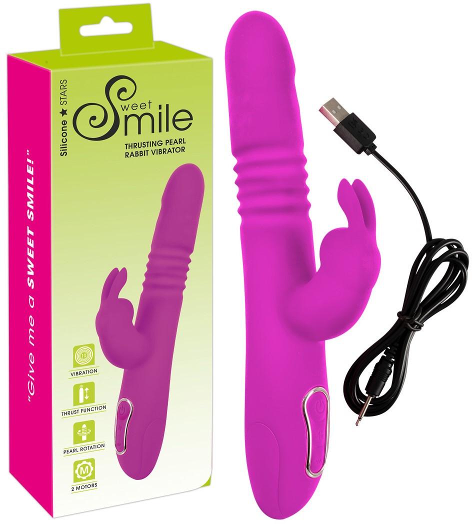 Le vibromasseur Sweet Smile est un puissant vibromasseur avec un stimulateur clitoridien flexible et des perles rotatives dans la tige pour un plaisir orgasmique complet jusqu'au point G.