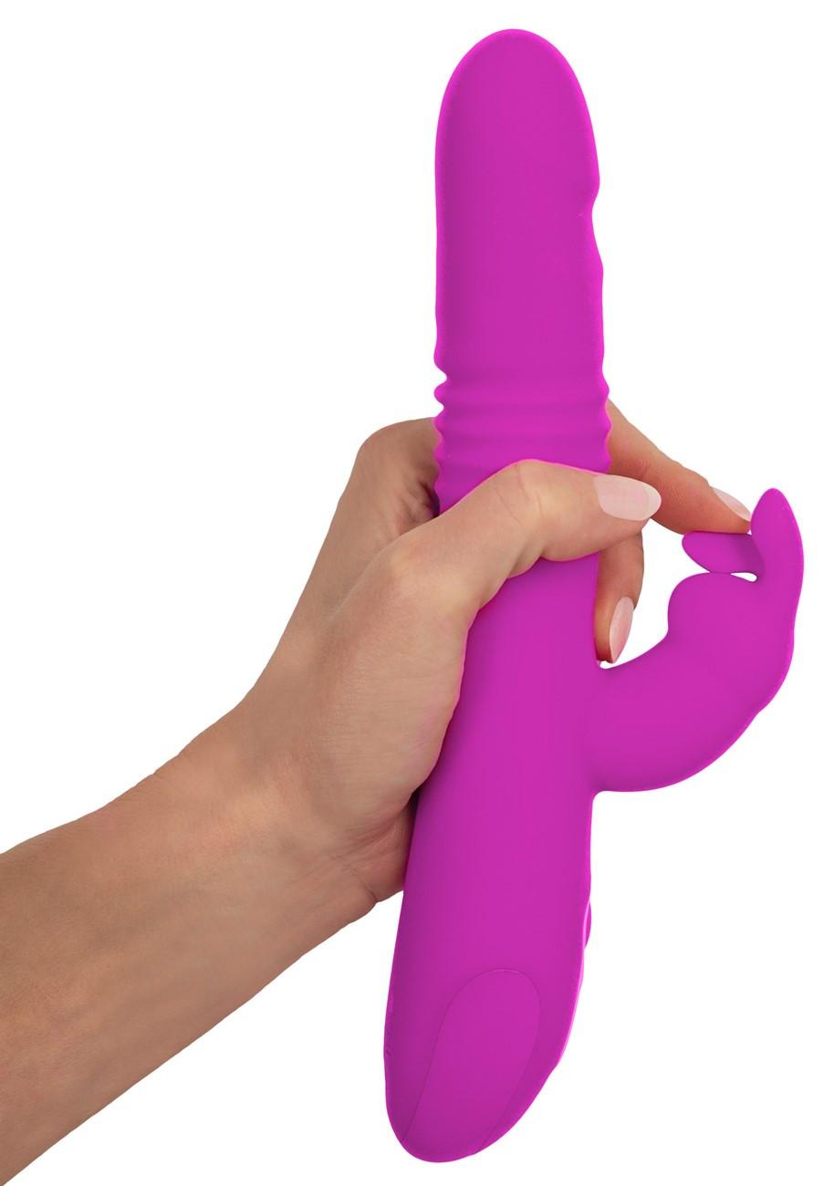 Les 2 moteurs puissants fournissent 10 modes de vibration différents dans le stimulateur clitoridien et 3 modes de poussée/rotation dans la tige. Les modes peuvent être contrôlés séparément en appuyant sur un bouton.