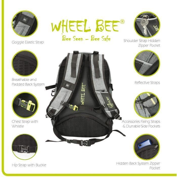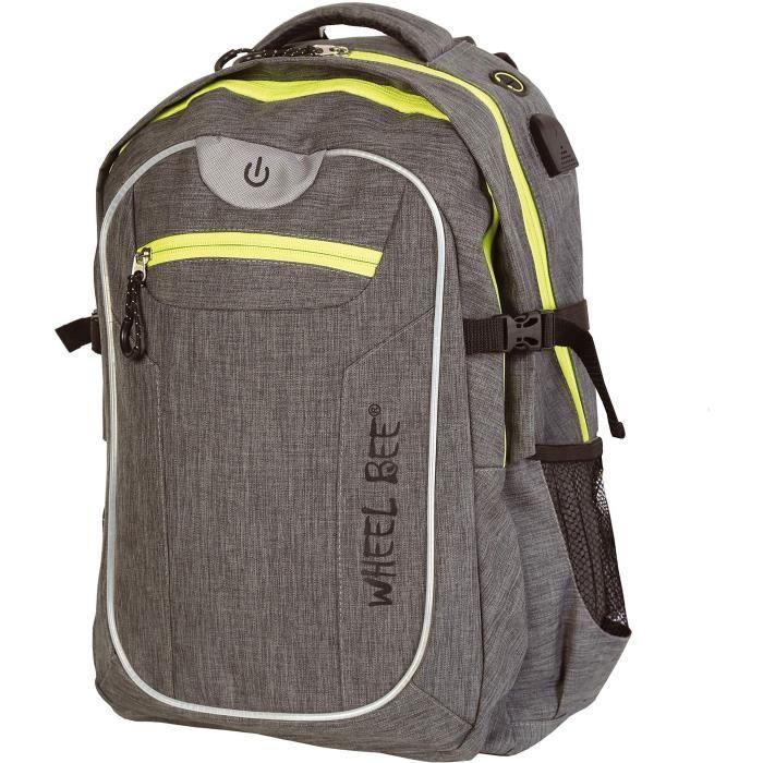 Le nouveau sac ``Revolution`` de la marque Wheel-Bee est un sac qui s´adapte spécialement a des utilisations diverses: loisirs/bureau/université/école, sac tres tendance avec lumieres LED intégrées pour sécuriser les déplacements, facile a utiliser, propose 3 fonctions: lumiere permanente, clignote rapidement, clignote lentement. Lumiere verte tres visible. Sac tres solide, tissé