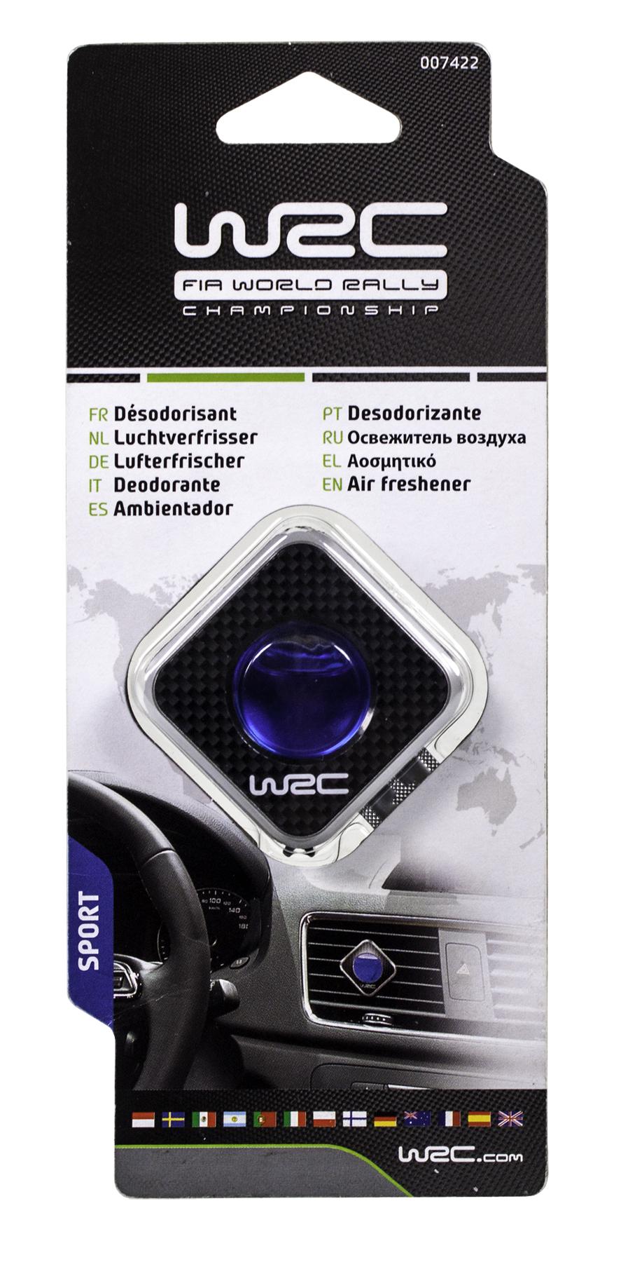 Désodorisant membrane pour Aérateur Senteur Sport pour parfumer subtilement votre véhicule Ce désodorisant motif carbone et aux couleurs de WRC apportera également un style sport et chic à votre intérieur A fixer sur l'aérateur grâce à la pince au dos Parfum actif pendant une durée de 30jours Dimensions : 52x52x48mm