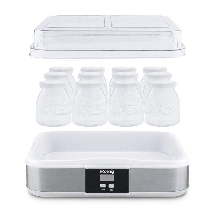 Yaourtiere HKoeNIG - ELY120 - Capacite 12 pots de 160ml - Programmable jusqu'a 15h - 15W